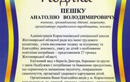 Подяка на адресу голови Благодійного фонду «Родина Пешко»