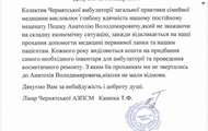 Подяка на адресу голови Благодійного фонду «Родина Пешко»