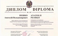 Обрання Пешко А.В. дійсним членом Академії ПолітикоПравових наук України